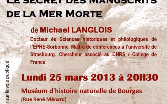 The mysteries of the Dead Sea Scrolls lead me to Bourges, where I have been invited for a conference on March 25 at 8:30 PM. The lecture will take place at the Museum of Natural History (allée René ...Read More